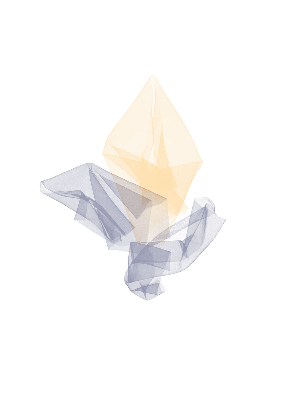 Au final, douze sérigraphies uniques sont disposées en suspension. Ces images flottantes, vaporeuses et épurées évoquent la fragilité et la quiétude. Enfin, choisi pour sa translucidité, le papier Mylar permet un jeu de lumière, par lequel la direction de l’éclairage altère l’apparence de l’image.